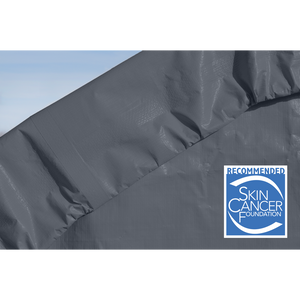 The triple-layer fabric covers and end panels are 100% waterproof and UV-treated inside and out with added fade blockers, anti-aging, and antifungal agents, resulting in a tough cover that withstands the elements. The cover is also recommended by the Skin Cancer Foundation.
