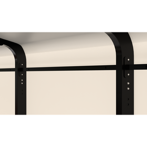 The rectangular-tube sliding crossrail is redesigned and strengthened to lock down cover for optimum frame-to-fabric fit, which will prevent the cover from flapping, stretching, or ripping.