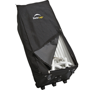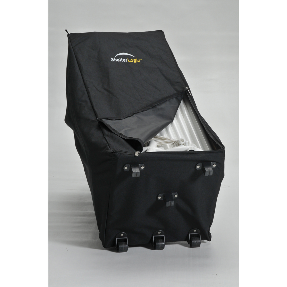 Store-IT canopy rolling storage bag makes seasonal canopy storage quick and easy. Developed to conveniently store and transport the MaxAP canopy 10 x 20 ft. by ShelterLogic, this heavy-duty bag with double wrap zippers rests on a sturdy, reinforced base with 3 rolling wheels for easy and effective stow and go. Spacious enough to fit MaxAP canopy accessories including extension, enclosure and screen house kits. Fits most ShelterLogic 10 x 20 ft. canopies. Storage bag only, canopy sold separately.
