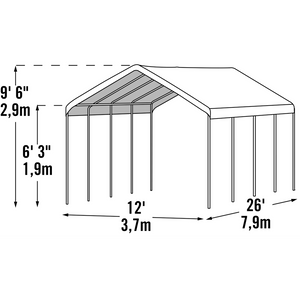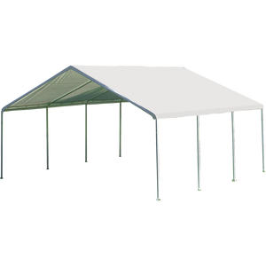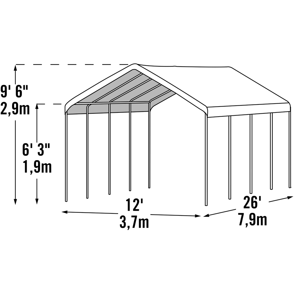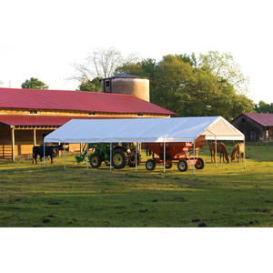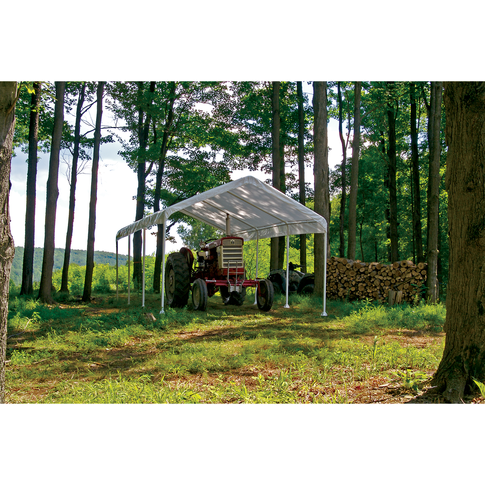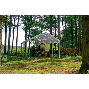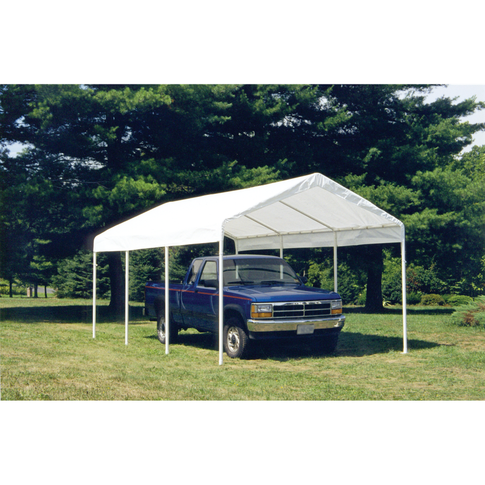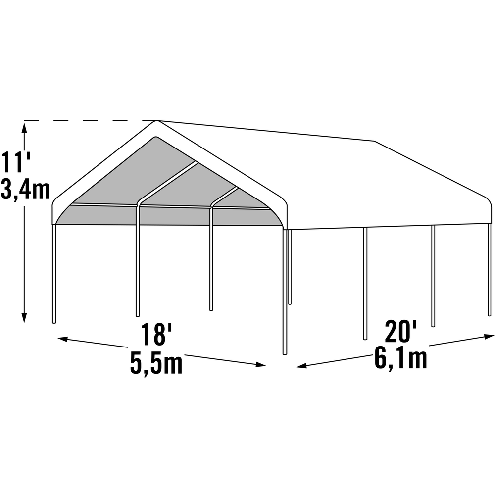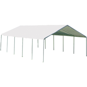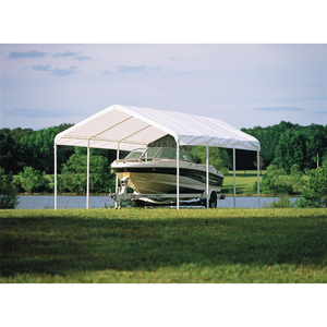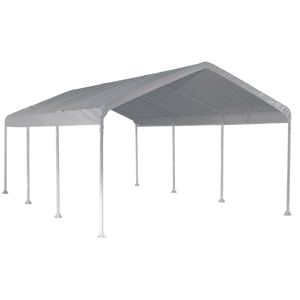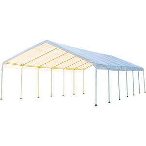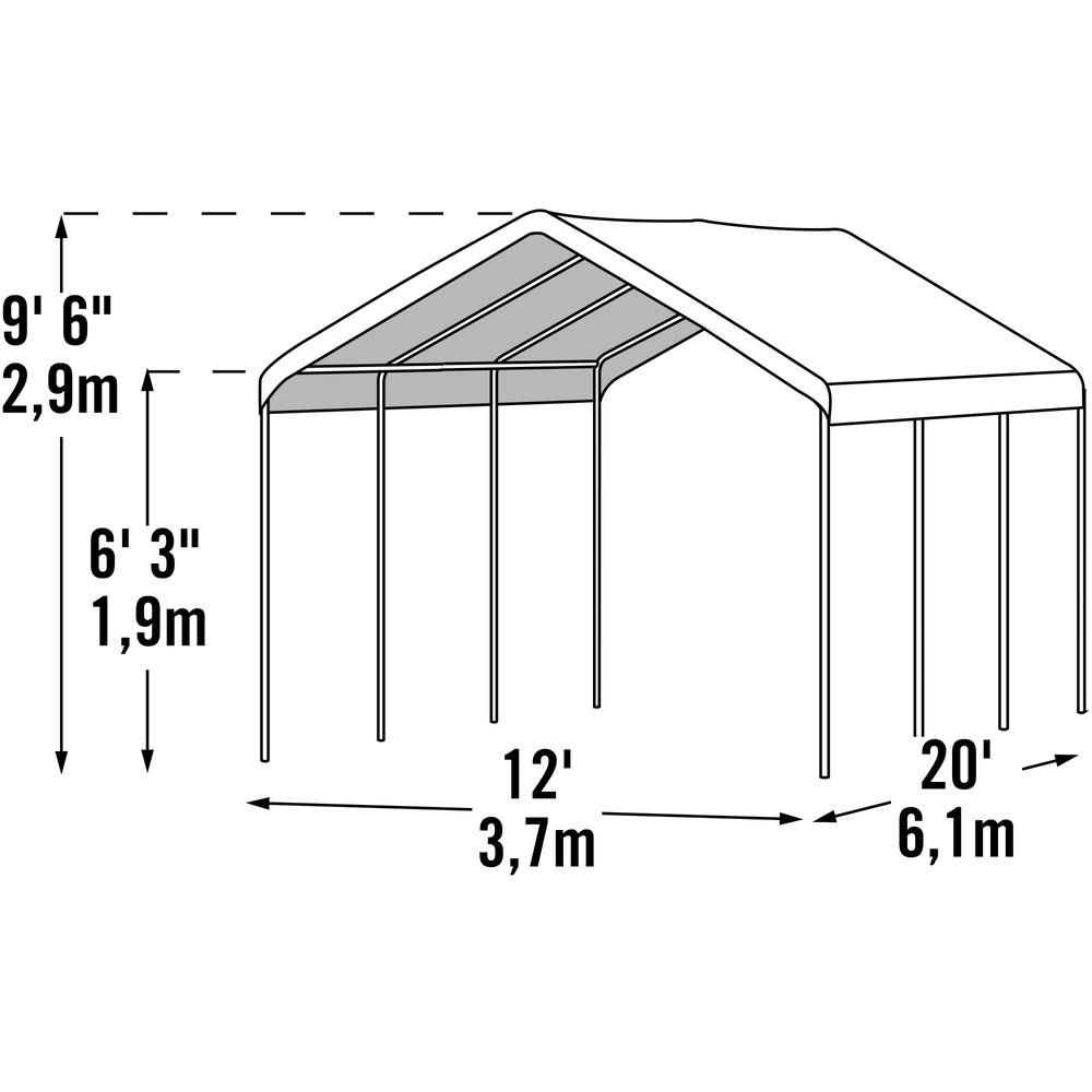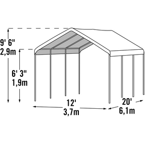 The ShelterLogic SuperMax 12 x 20 ft. 2in. 8 Leg Canopy provides shade and protection for your backyard events, vehicles or valuables. This fixed leg canopy sets up fast making it the perfect seasonal shade solution for boats storage, tractors, camping, picnic areas, backyard events, driveway ports or any place temporary shade or protection is required. The SuperMax 8 Leg Canopy is easily constructed by 2 people in less than 2 hours. Quick fit slip together swedged tubing makes frame set up easy. Valanced cover attaches to the frame with ease using bungee cord fasteners. Premium 12 x 20 ft. canopy.