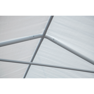 SKU 26773 Includes: 1x 18x20 ft. White Steel Frame, 1x One-Piece White Cover, Temporary Anchors
