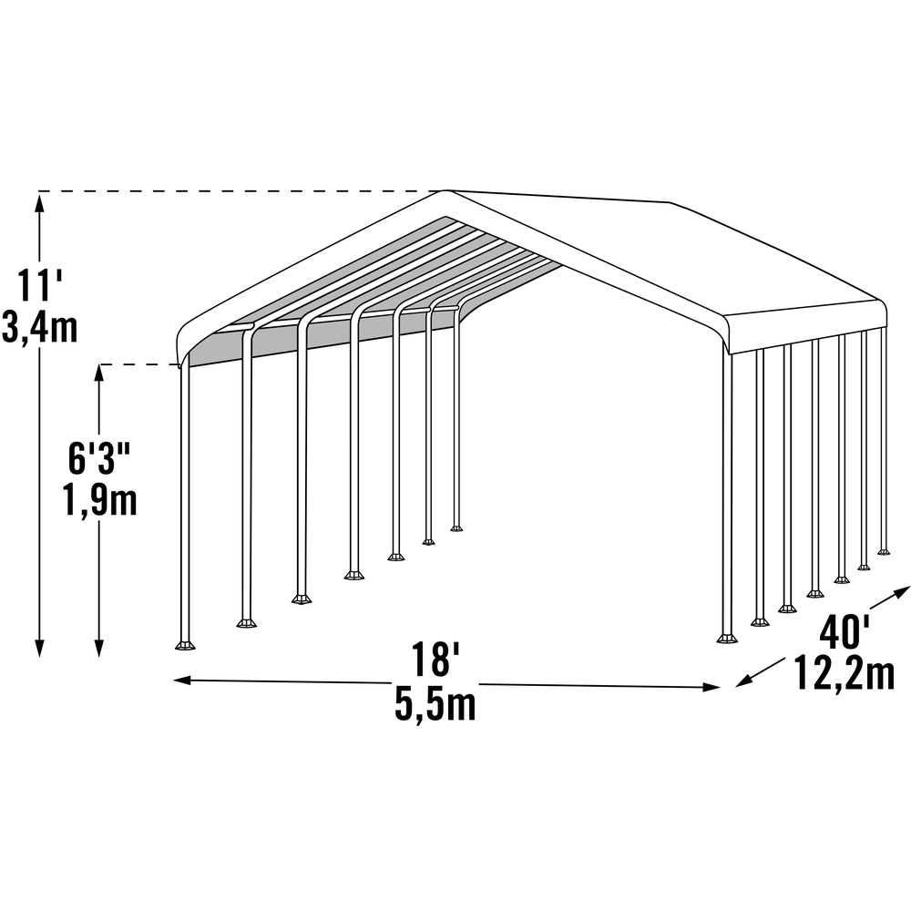 SKU 26764 Includes: 1x 18x 40 ft. White Steel Frame, 1x One-Piece White Cover, Temporary Anchors