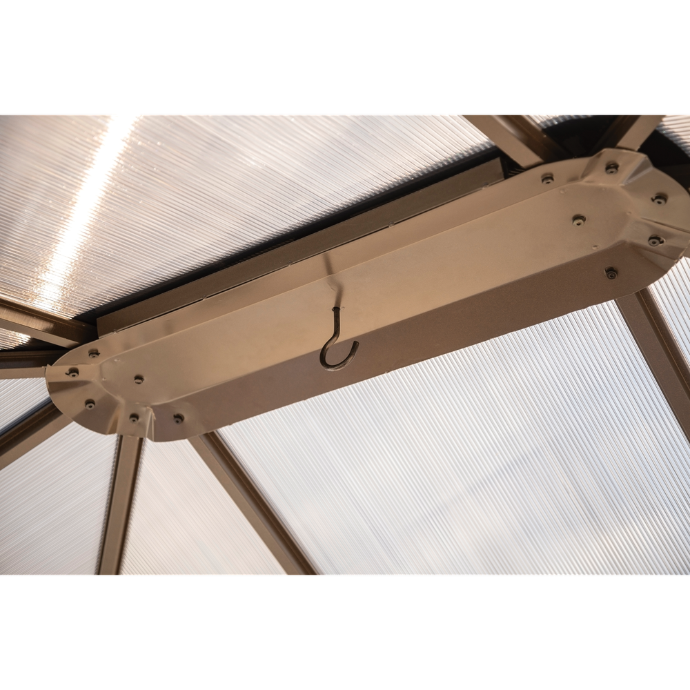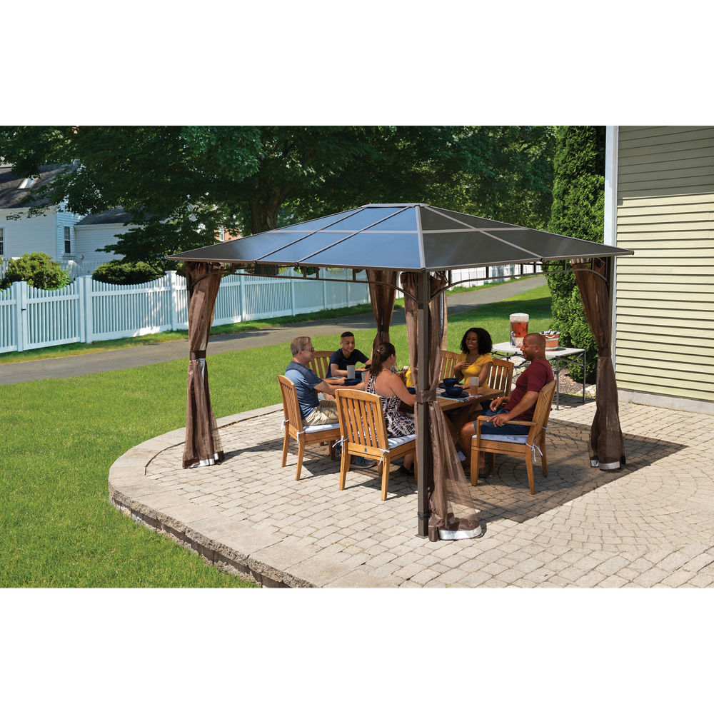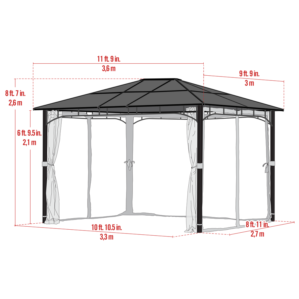 A great alternative to traditional gazebos, the freestanding Sycamore Gazebo is a versatile solution for virtually any deck or backyard. The powder-coated rust-resistant steel frame and aluminum polycarbonate hardtop roof are built to last and protect you from the sun and inclement weather for years to come. The gazebo offers 120 sq. ft. of outdoor entertaining space is an elegant choice that adds a pleasing aesthetic to backyards, decks, patios, gardens, and much more.