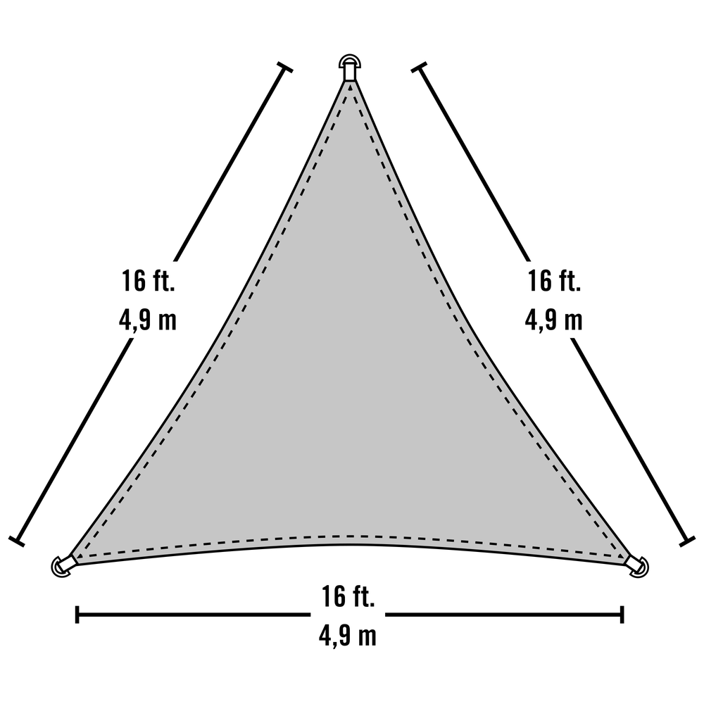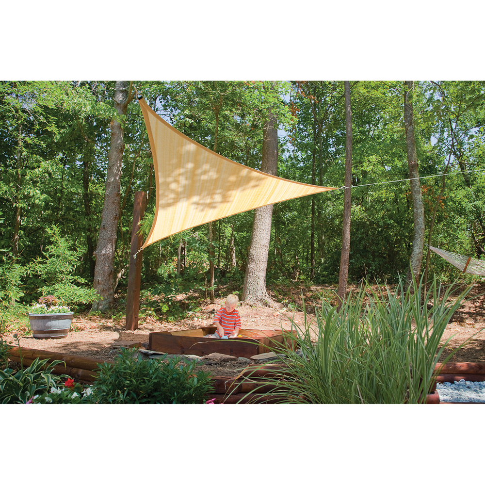 The ShelterLogic 12 x 12 x 12 ft. triangle Shade Sail is the do-it-yourself shade product that allows you to create your own unique shade design. Shade Sails easily attach to any sturdy connection point to provide sun protection and personal design where you need it. Each Shade Sail is shipped ready to install and includes a basic hardware kit for easy attachment to the house, building, tree or post. Shade Sails offer an excellent shade solution for backyard decks, patios, pools, play areas, camping, or any place shade is needed. Combine more than one Shade Sail or mix shapes to create your own unique outdoor shade and living space.