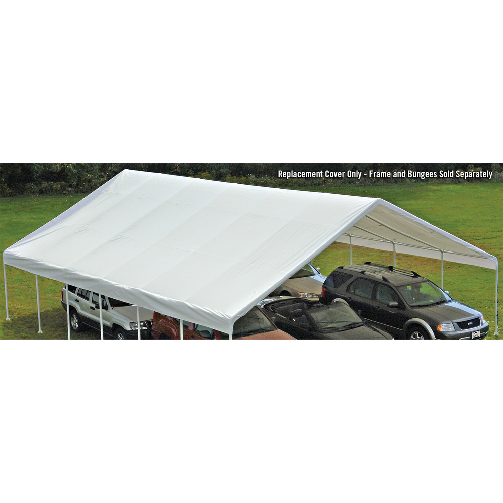 The ShelterLogic UltraMax Canopy provides shade and protection for your backyard events, vehicles or valuables. This fixed leg canopy sets up fast making the perfect seasonal shade solution any place temporary shade or protection is required. Valanced cover attaches to the frame with ease using bungee cord fasteners. UltraMax Canopy is great for special events, seasonal vehicle or boat storage, agricultural equipment storage, bulk storage, camping, commercial job sites, picnic areas and much more.