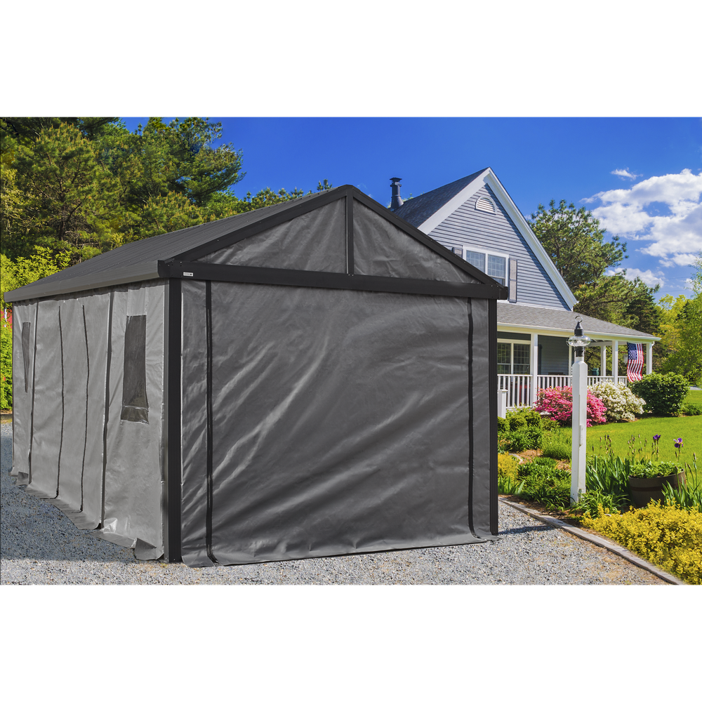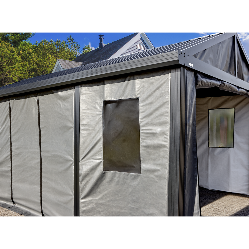 Complete your Samara carport with the enclosure kit. The polyethylene fabric panels will add protection to your vehicle during those harsh winter months. Equipped with 4 windows to let the sunshine in and 2 side doors that can easily be rolled-up to facilitate entry. Keep the enclosure kit up all year round for added privacy or simply put it up for winter. No matter how you choose to use it, it is the perfect accessory for your carport.