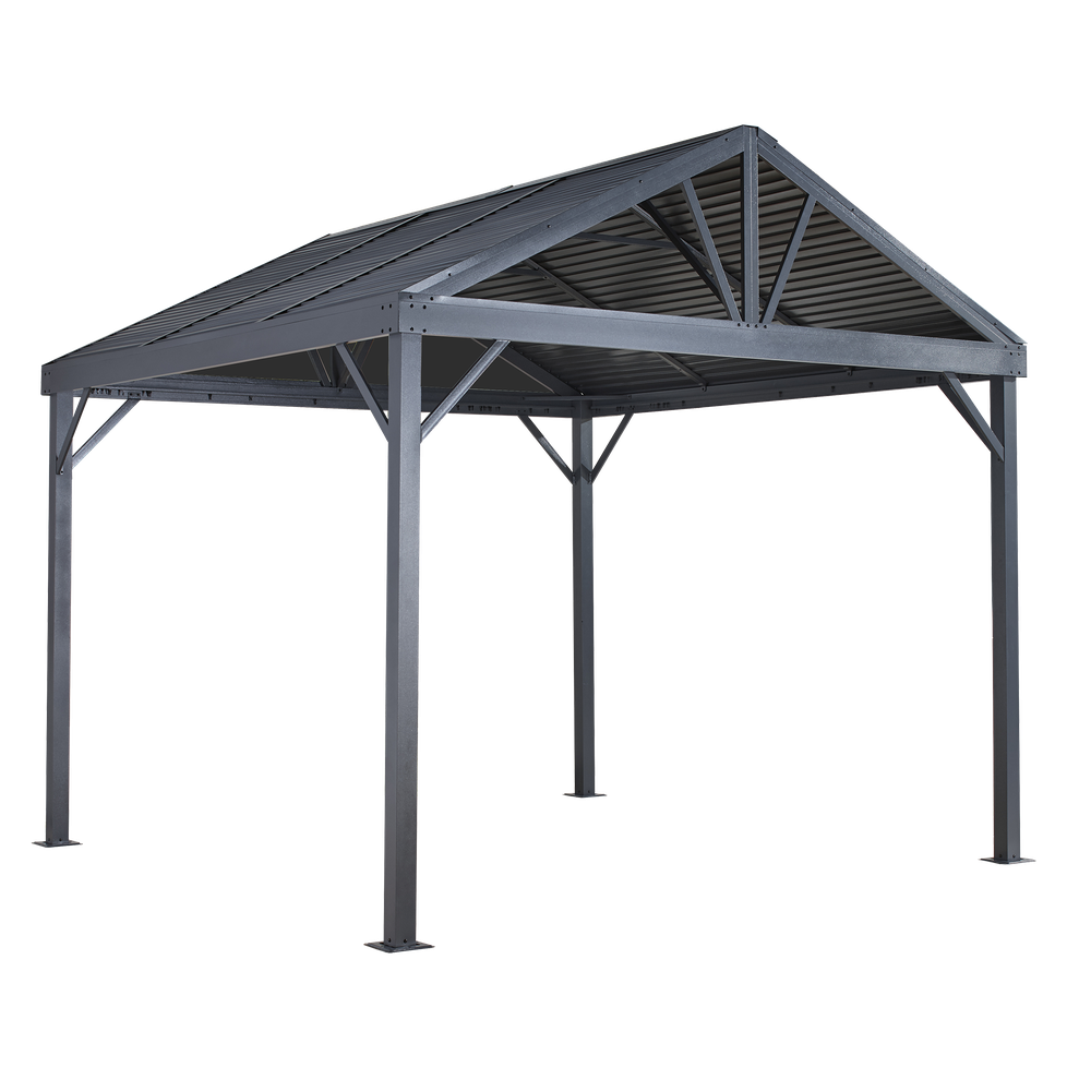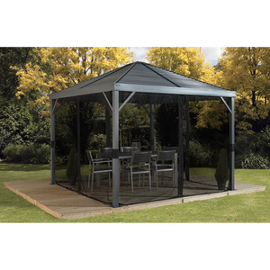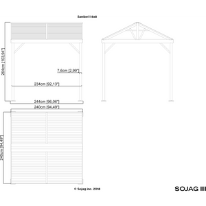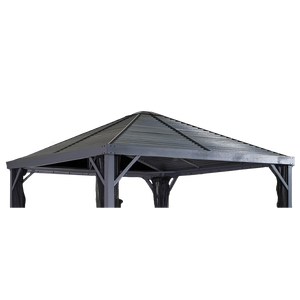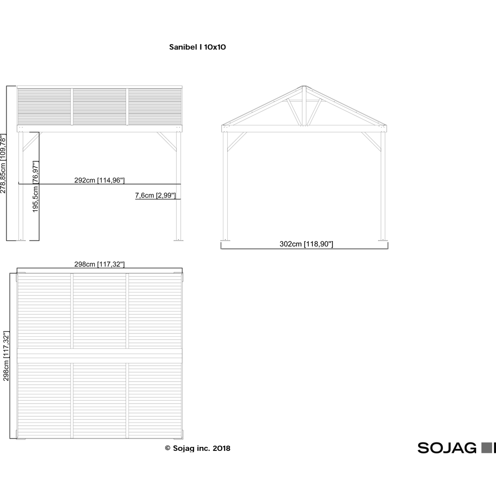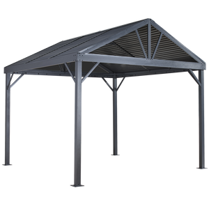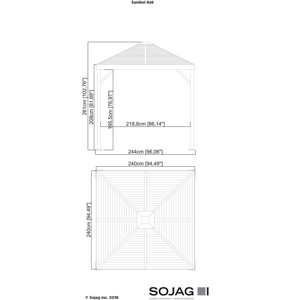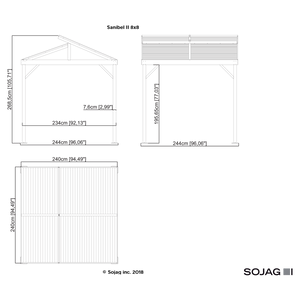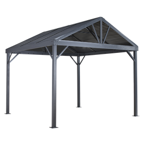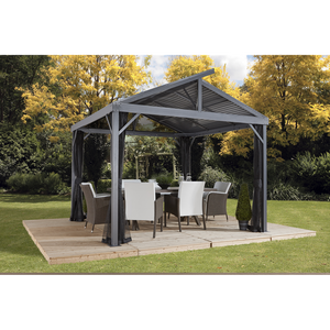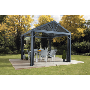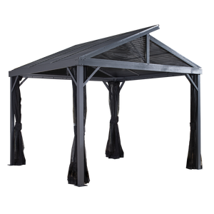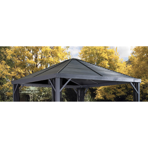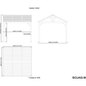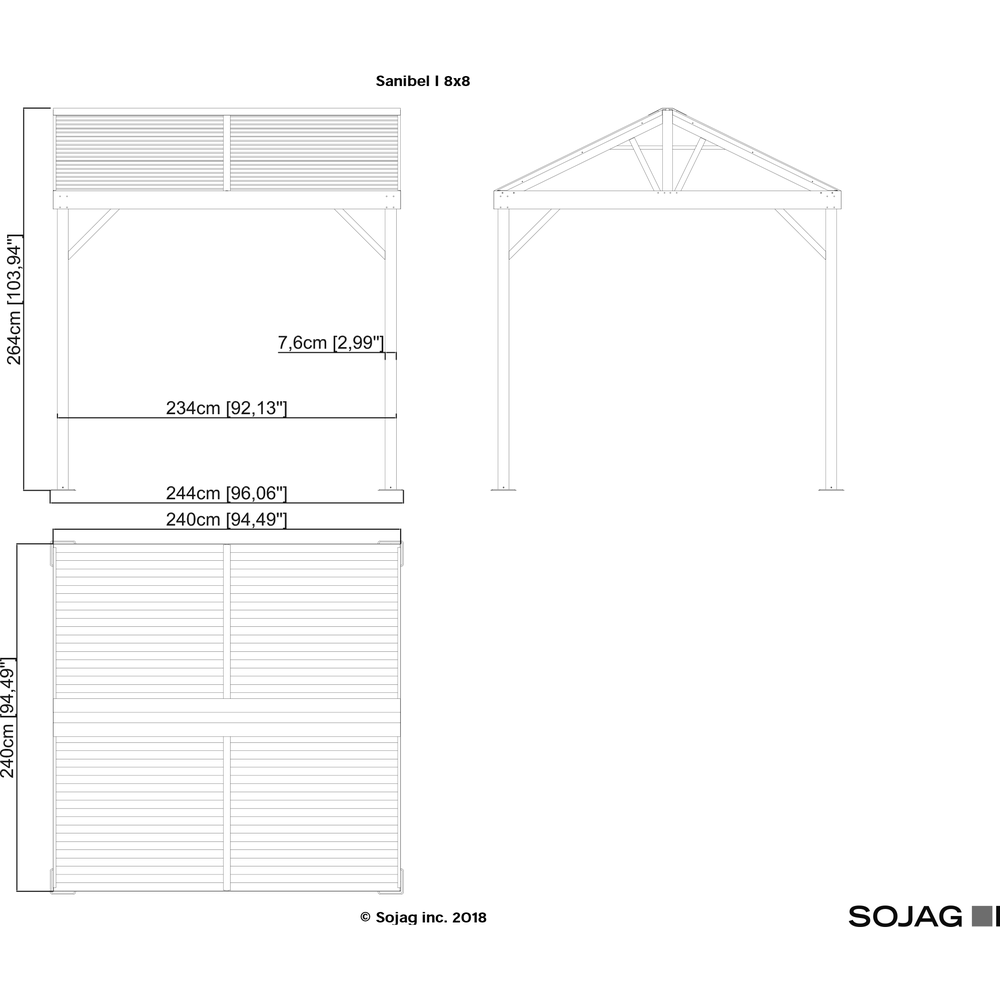 Modernize your outdoor relaxation area with the all-new Sanibel sun shelter generation from Sojag. Having clean lines, without fancy frills, it is as practical as it is attractive. Being offered with three different roof versions, it will satisfy the designer in you. Just search for Sanibel and Sanibel II to compare and make your choice. Regardless of the version, the Sanibel will provide you the desired shade using galvanized steel roof and will serve as an outdoor dining room when you receive family and friends. Why deprive yourself?
